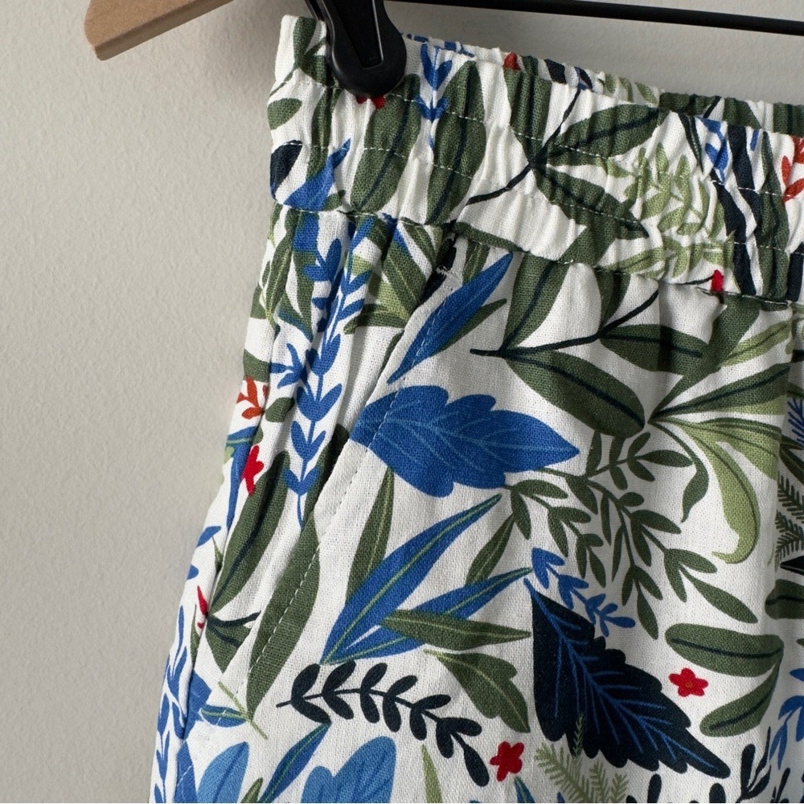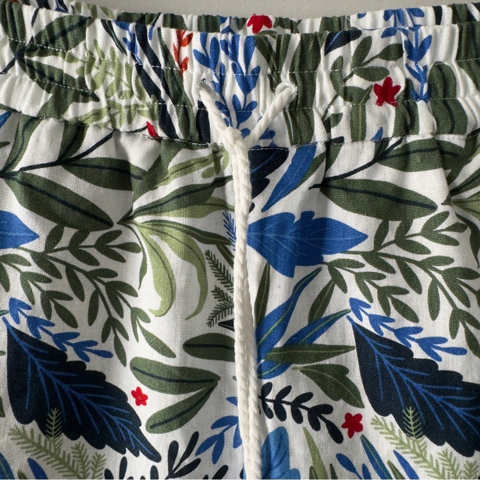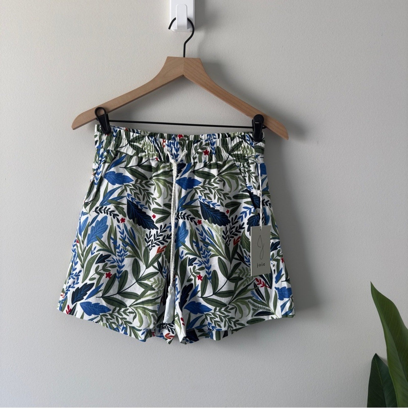 Joie Linen blend Green and Blue Leaf Print Women's Shorts rope tie drawstring 2
