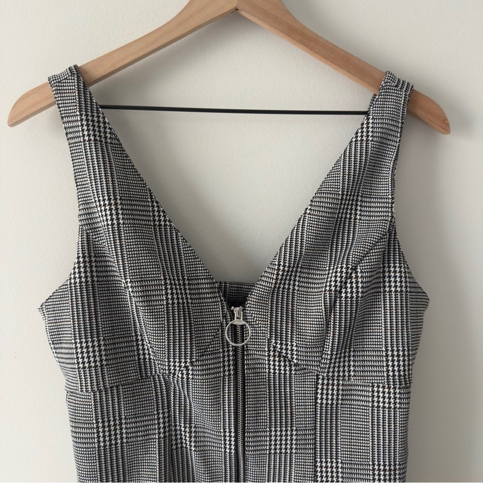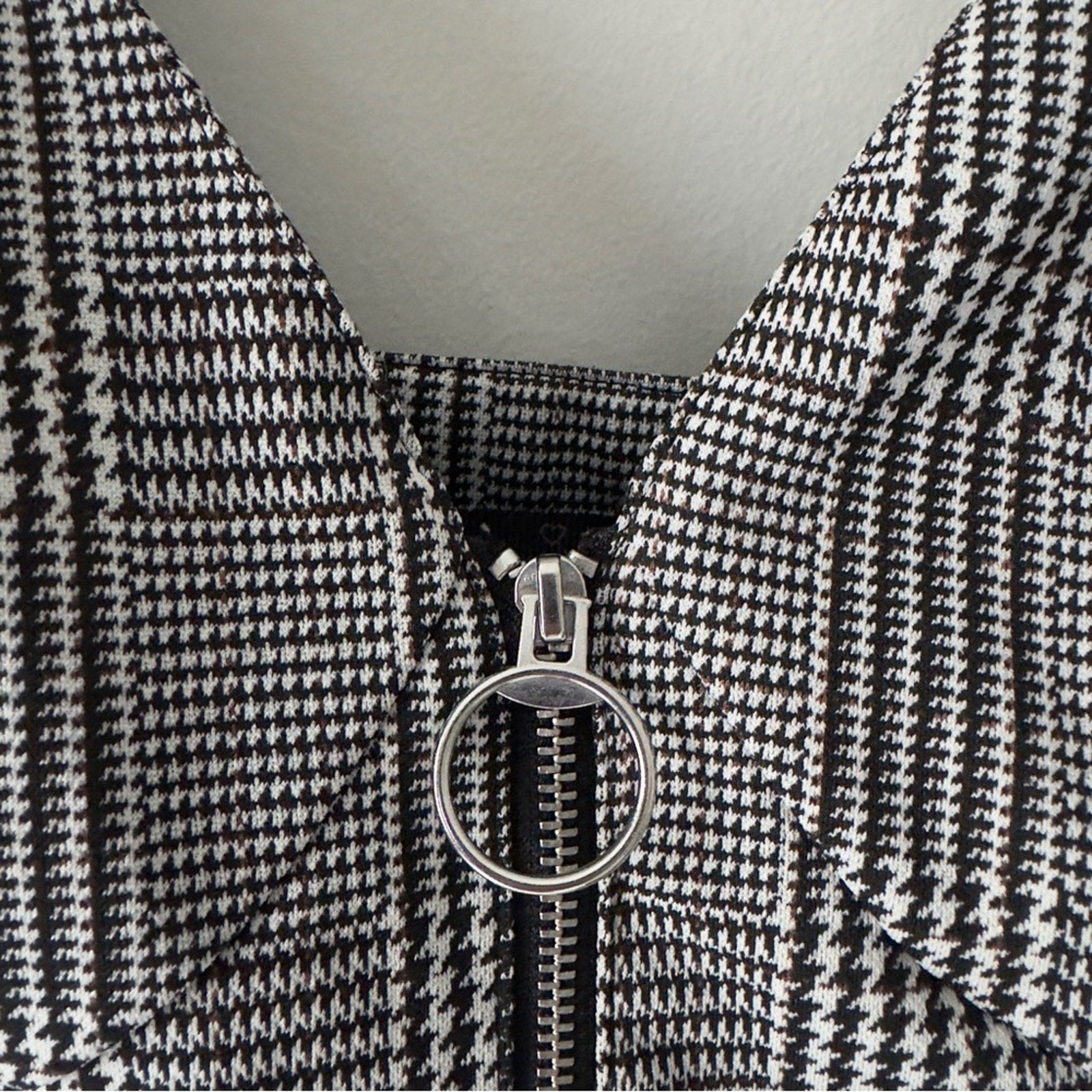 Love Tree Pinafore Plaid Black White mini Dress Full Zip Front Circle Zipper EUC
