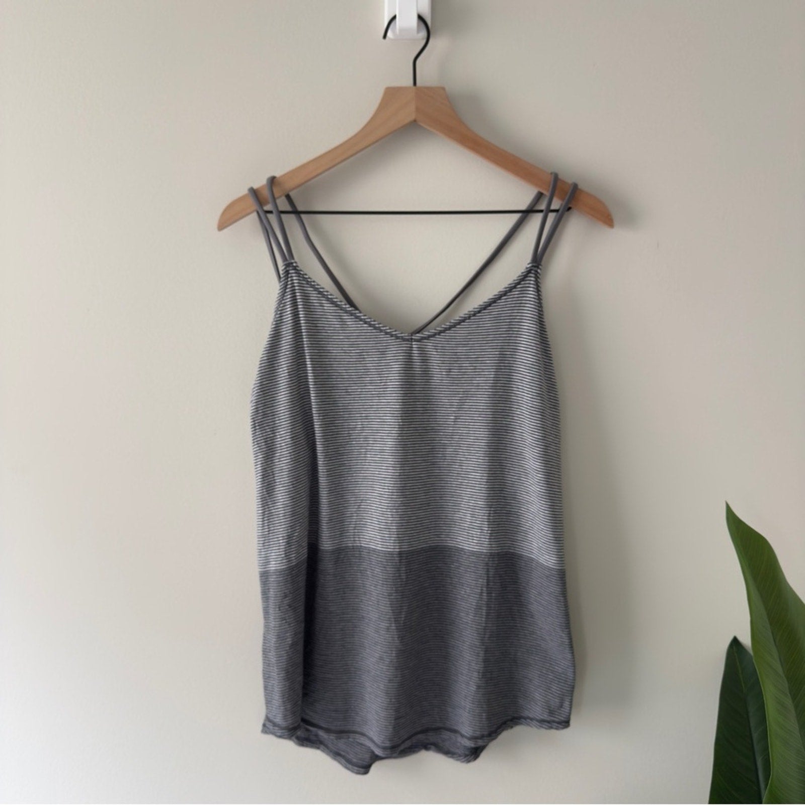 Stylish gray tank with subtle stripes. Perfect for casual wear.