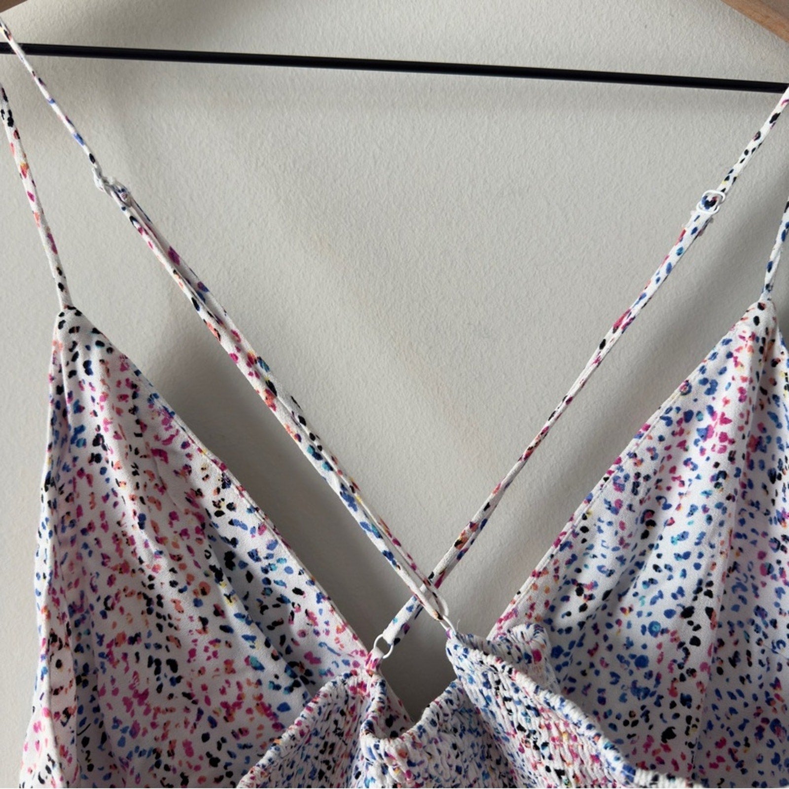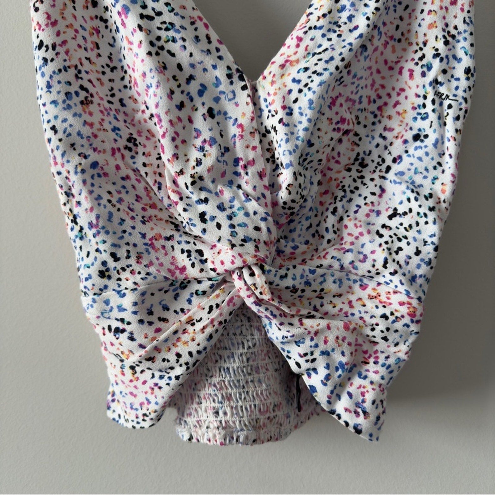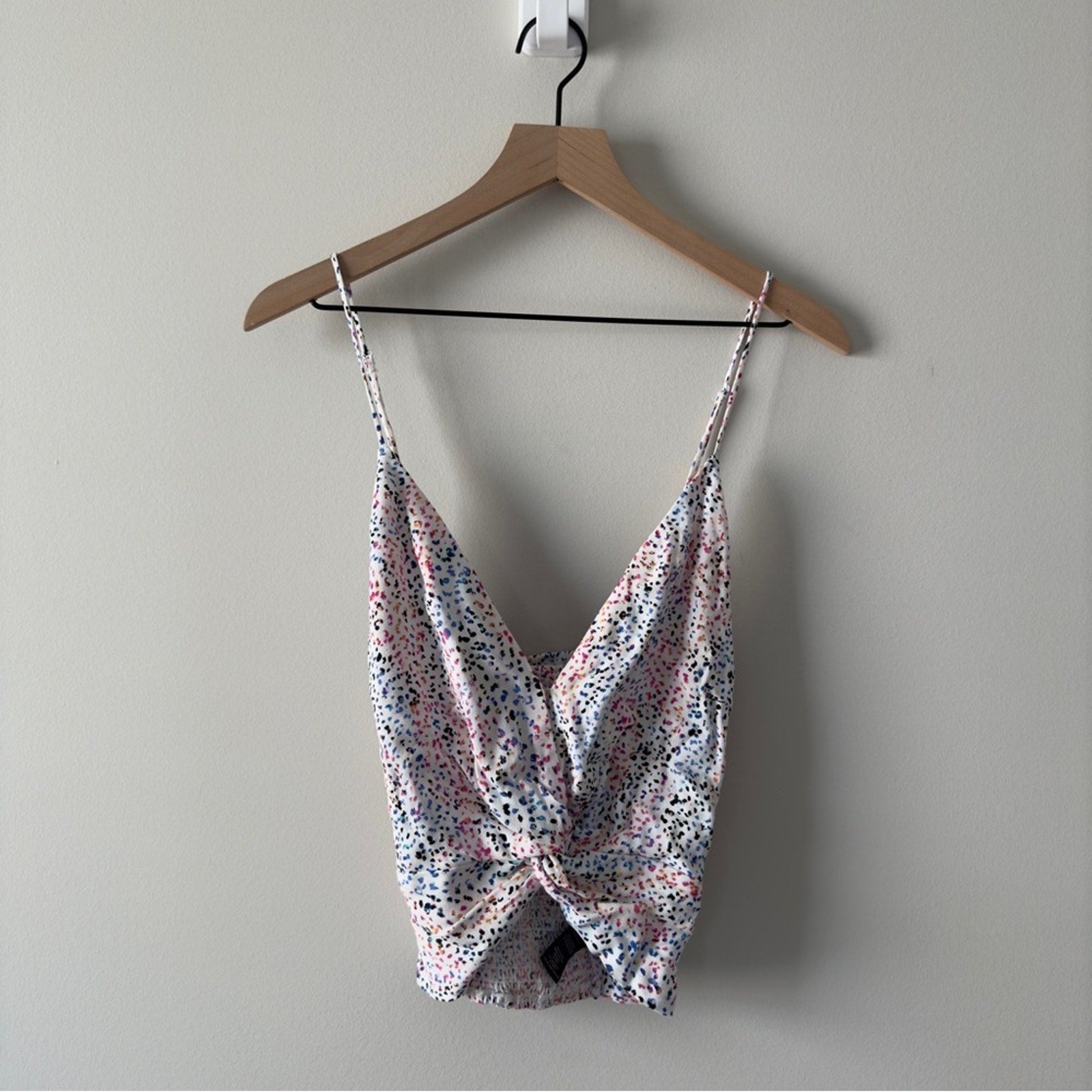Revolve AFRM Multicolor Animal Print Crop Tie Front Camisole scoop v-neck smock