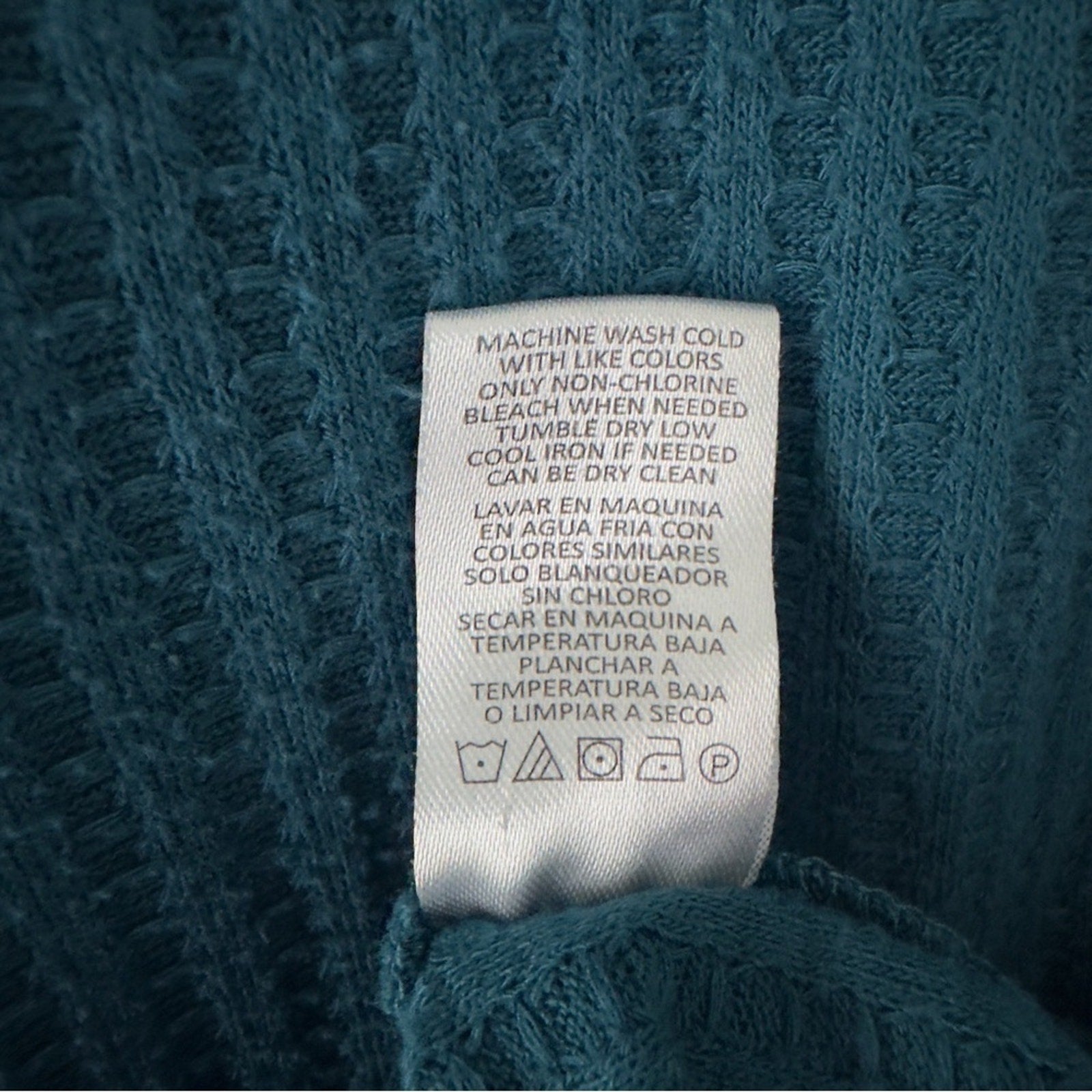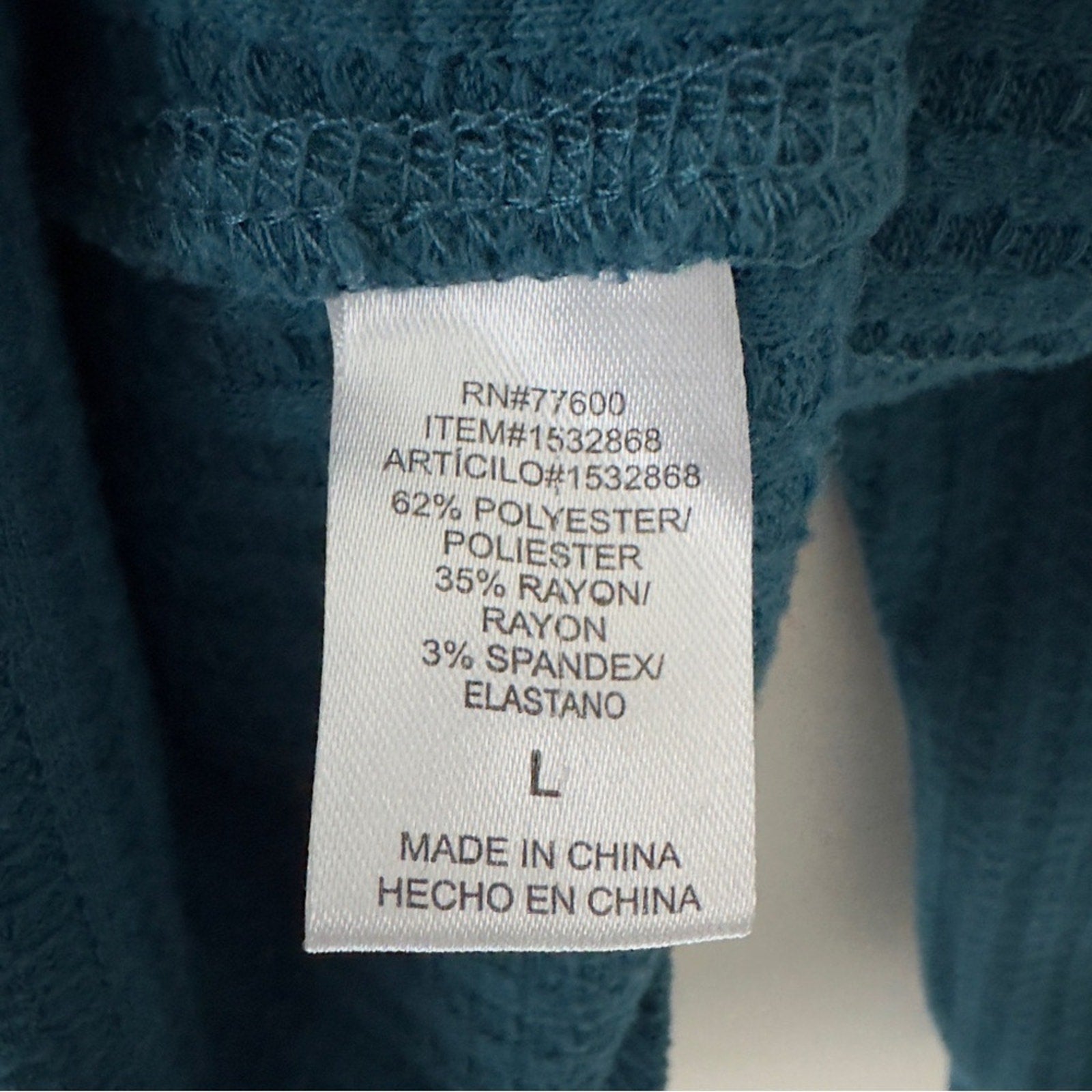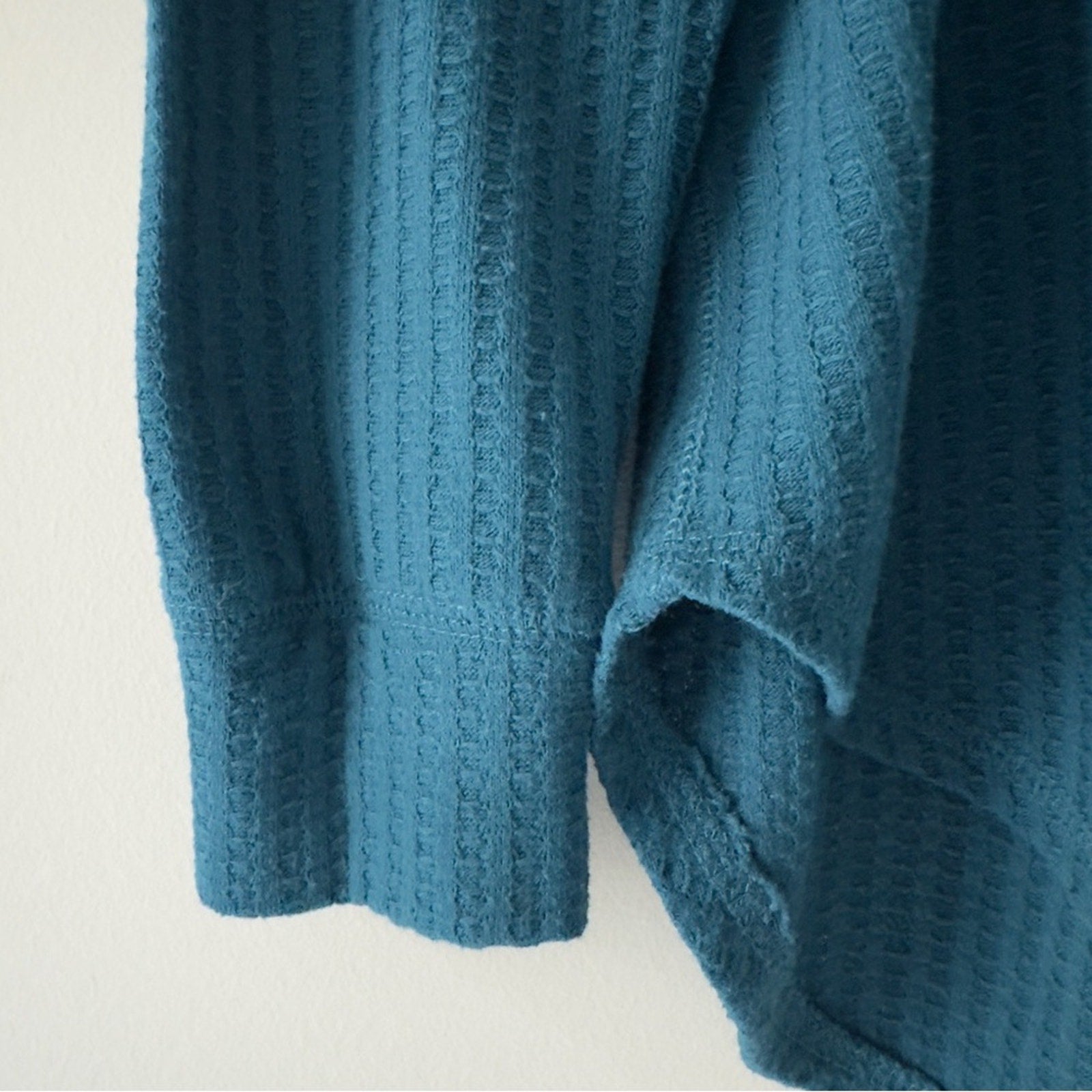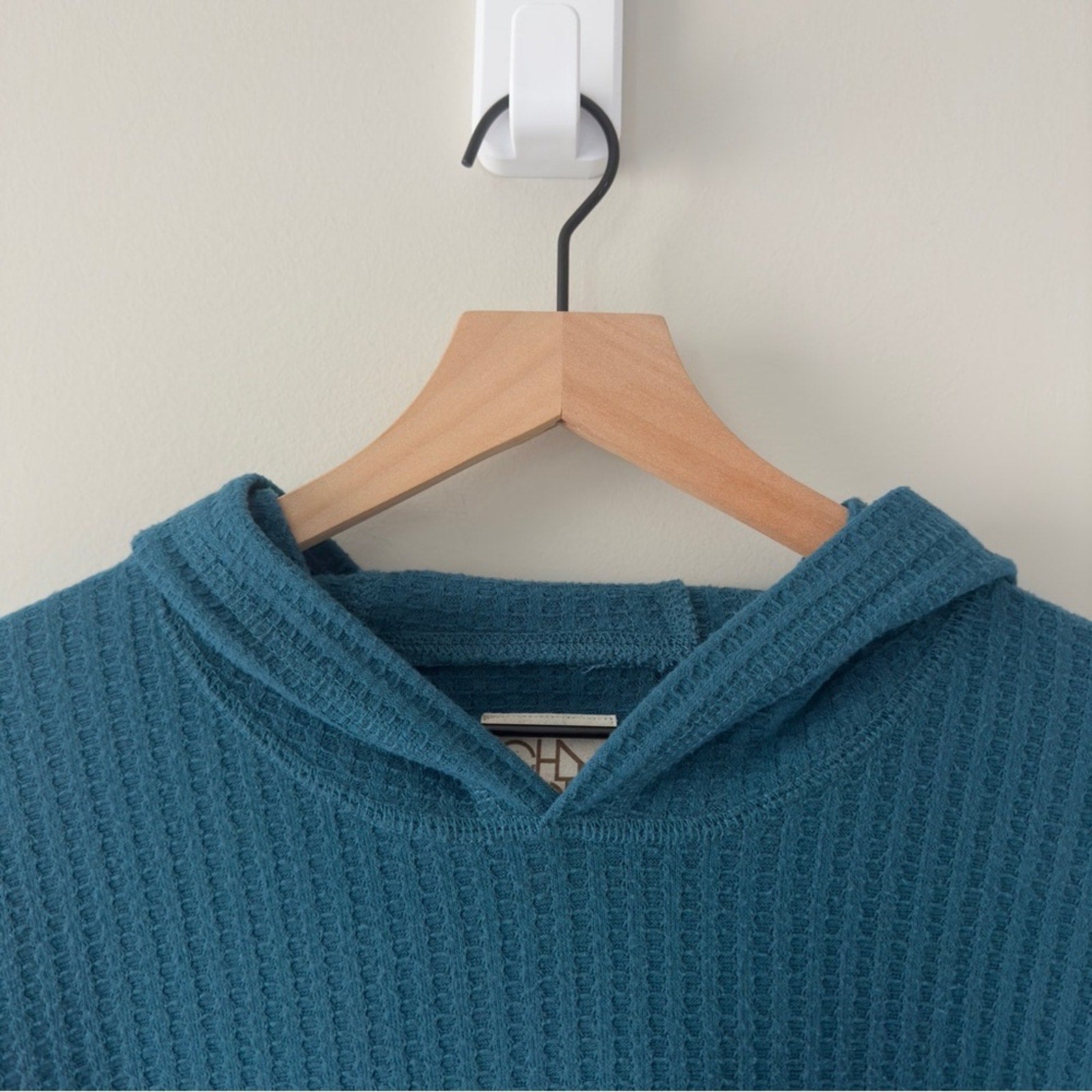 Revolve Chaser Teal Hooded Sweater Top Waffle Knit pullover long sleeve hood L