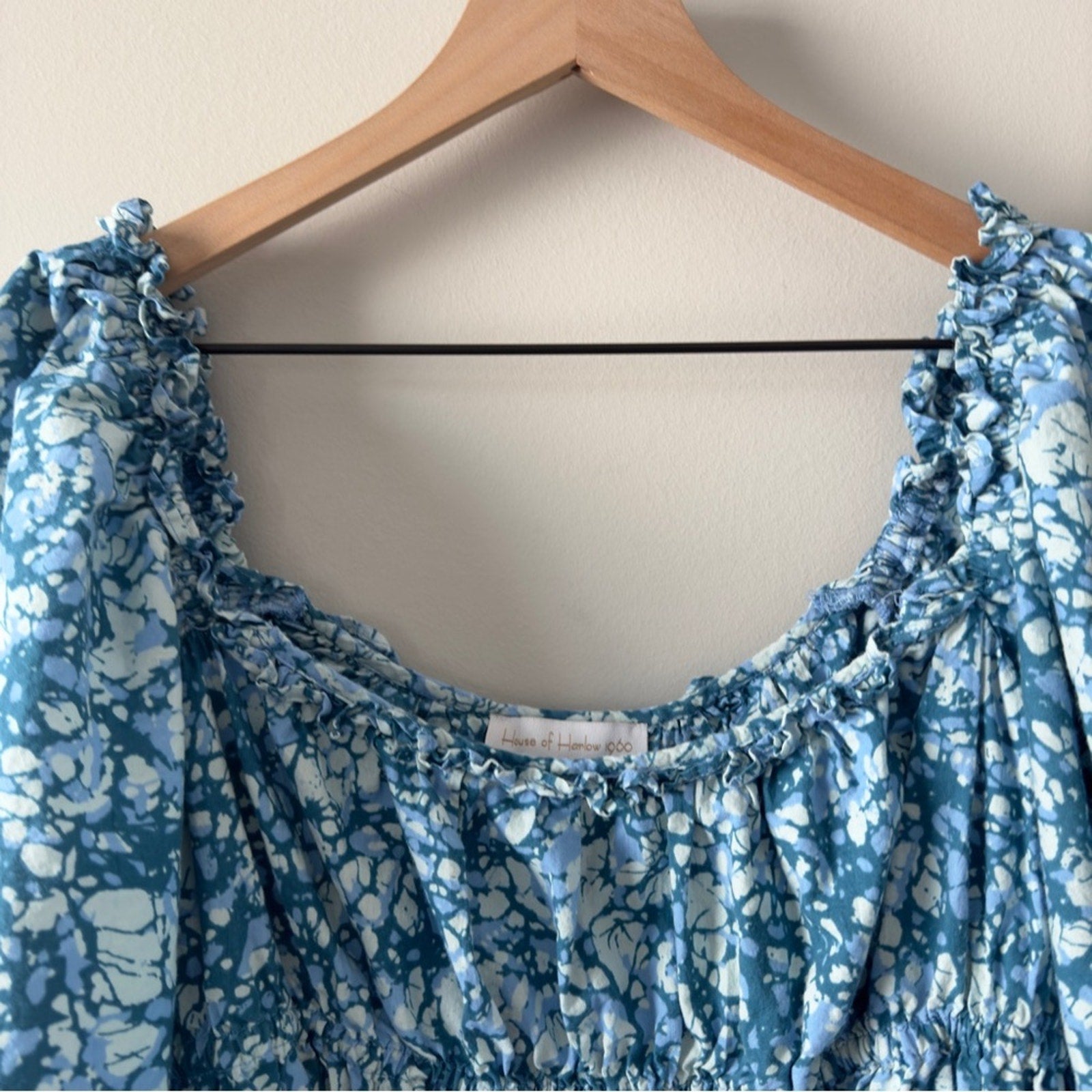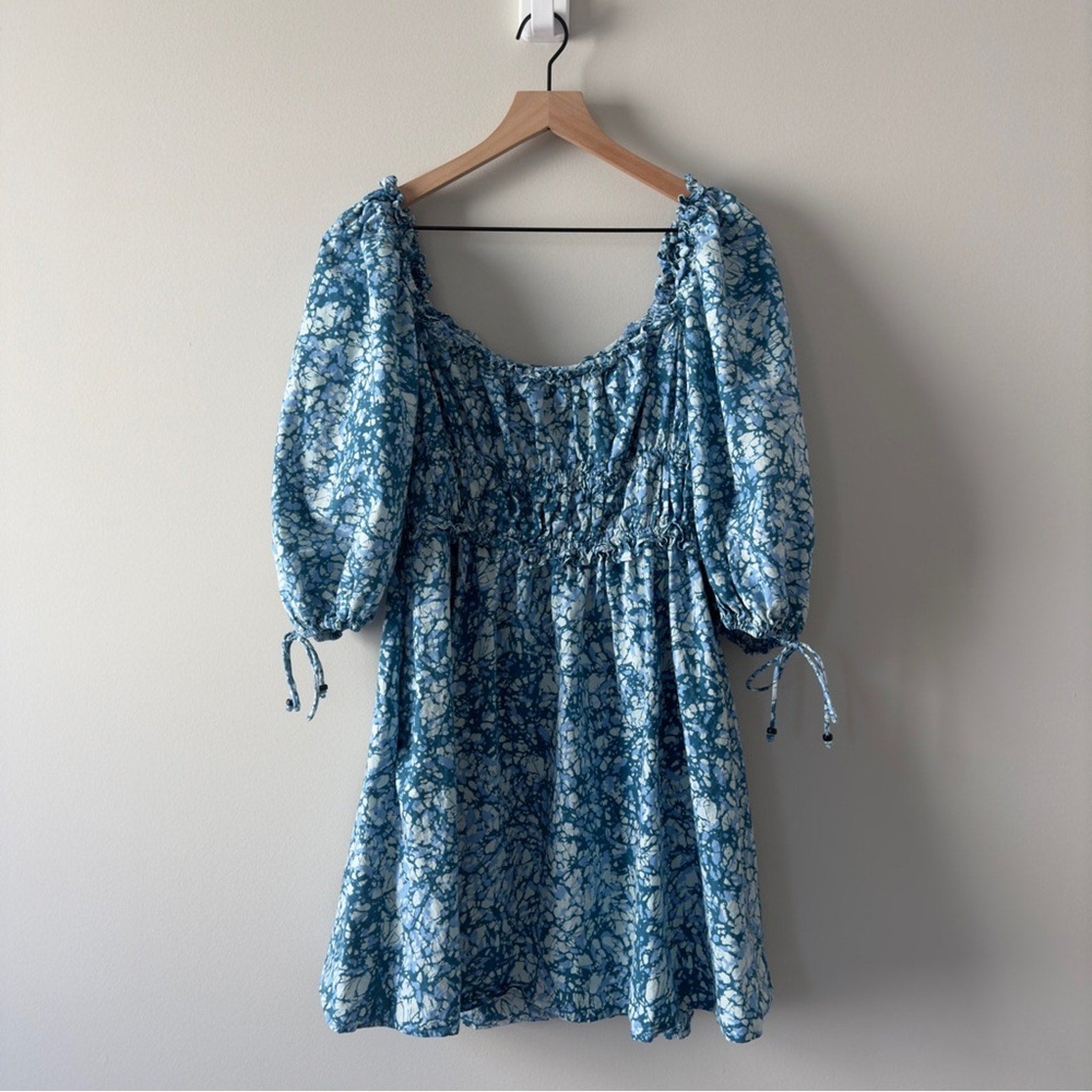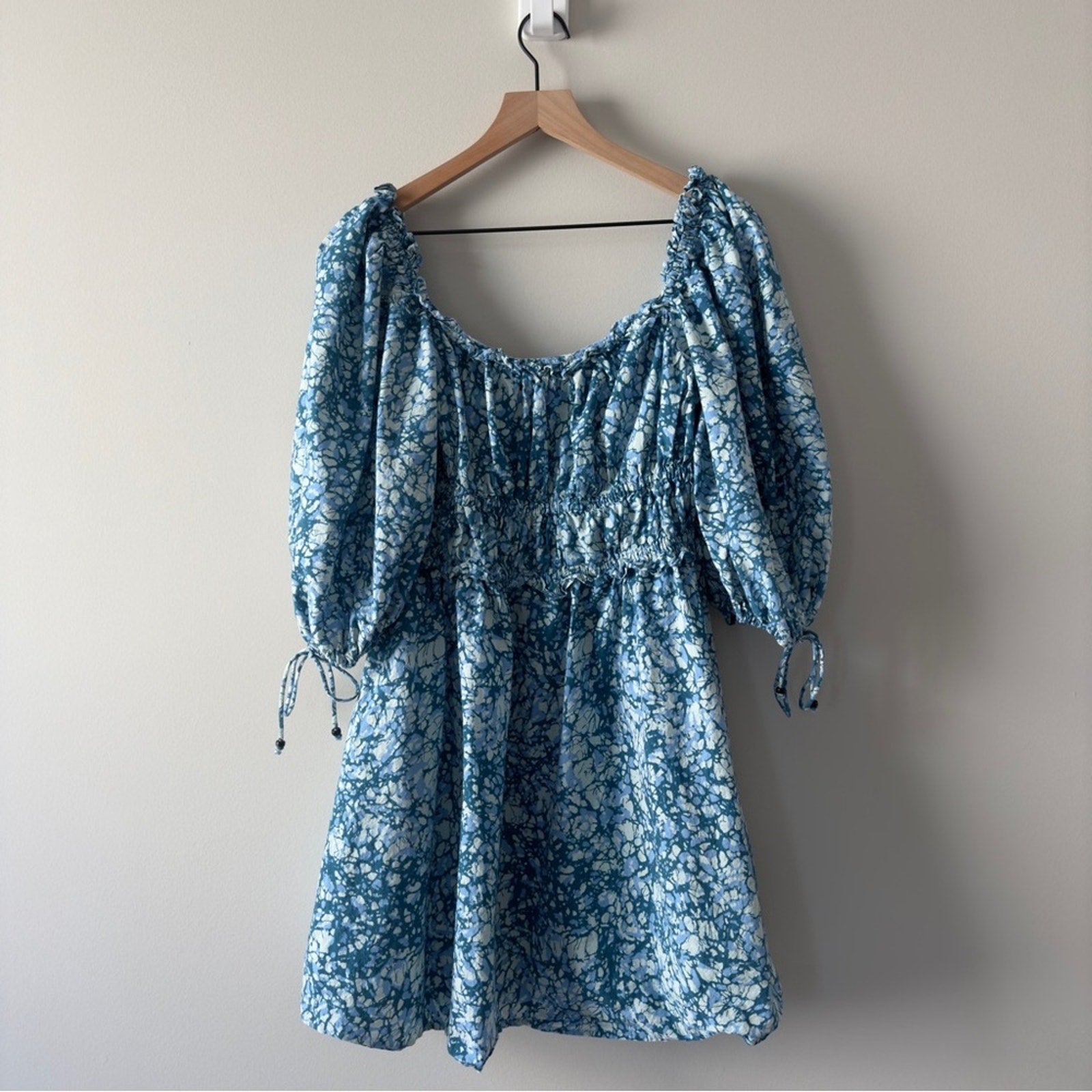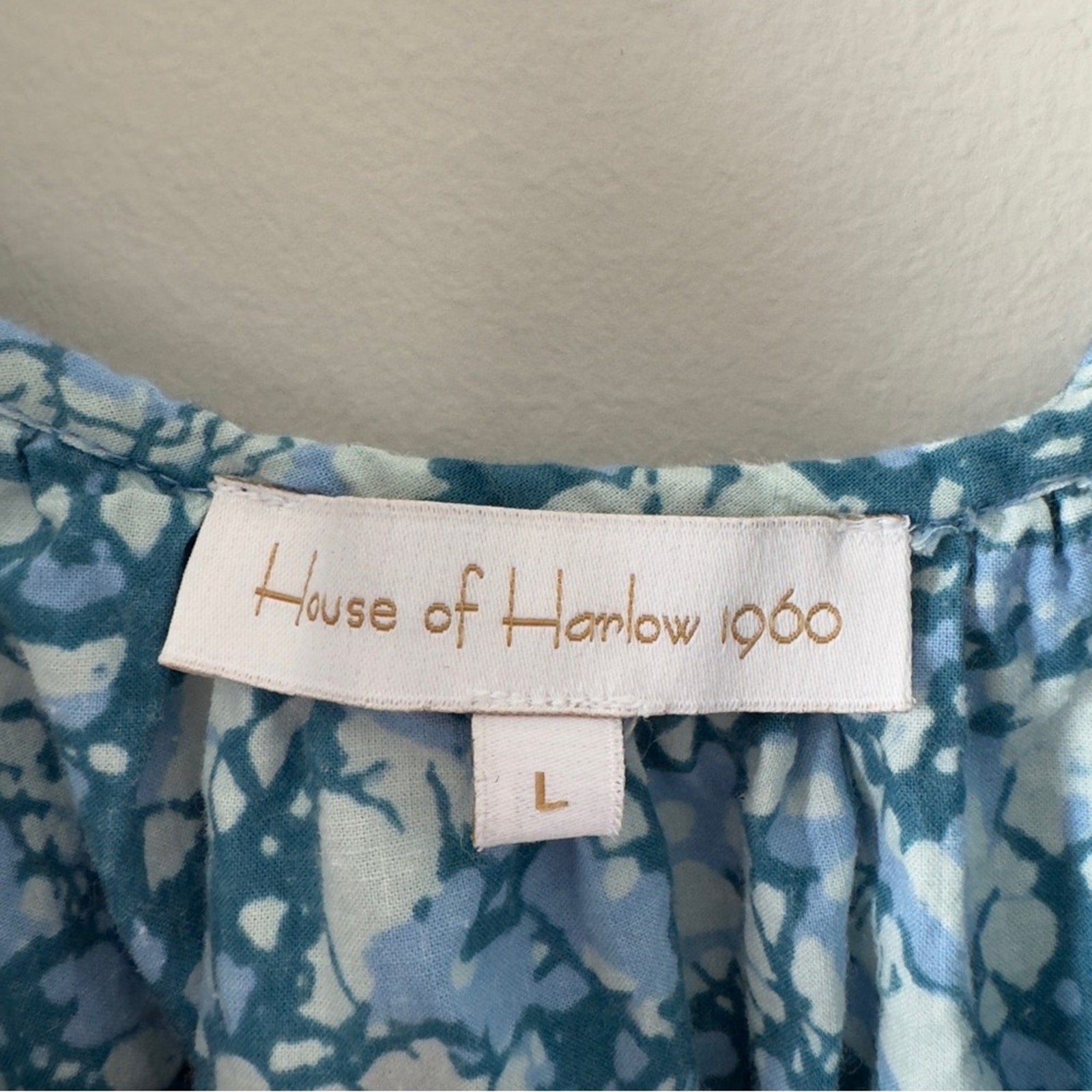 Revolve House of Harlow 1960 floral mini dress short bow balloon sleeve ruffle L