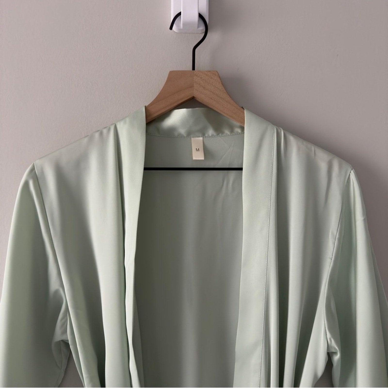 Experience comfort and style with this elegant mint green robe. Perfect for lounging or sleepwear, this piece offers a soft and luxurious feel.