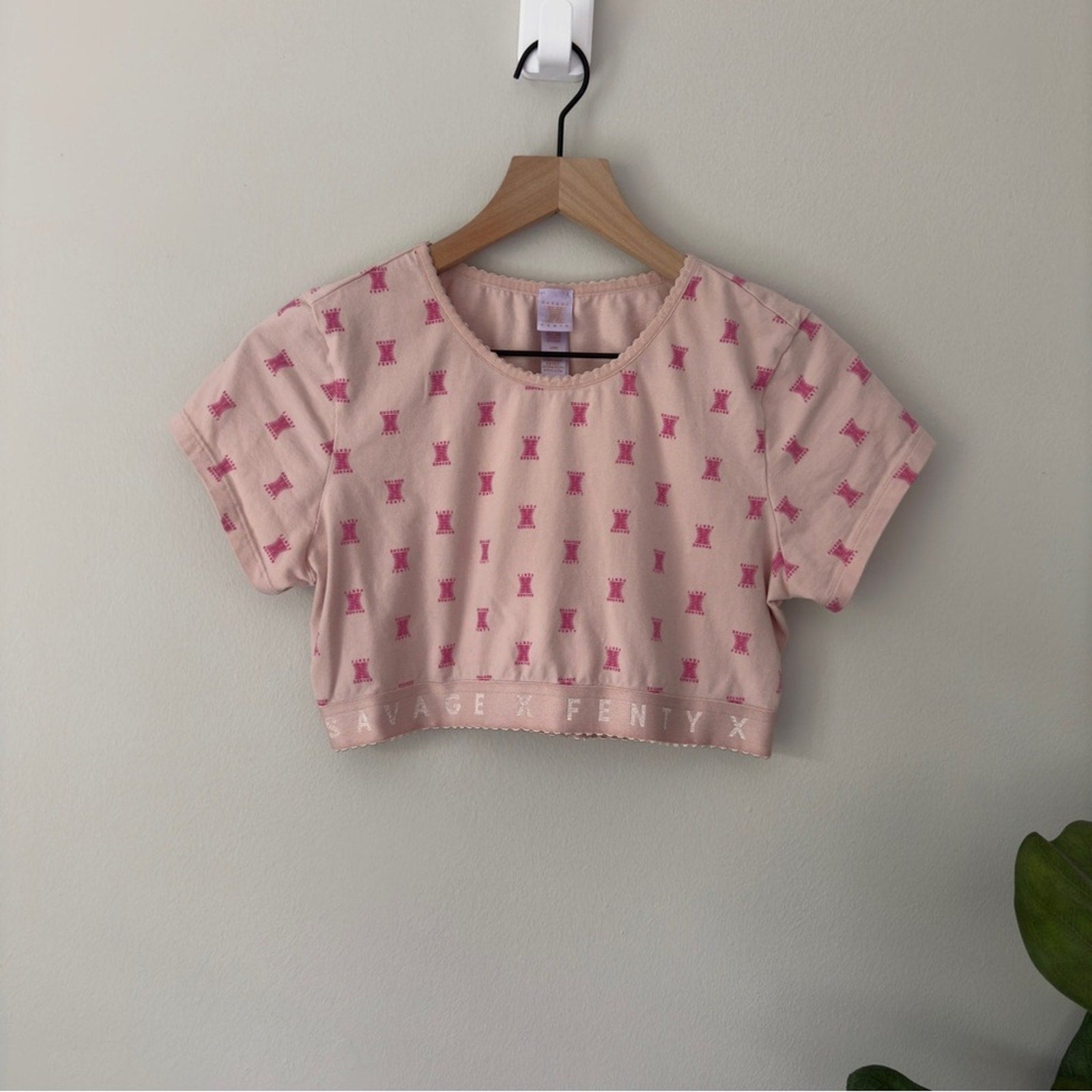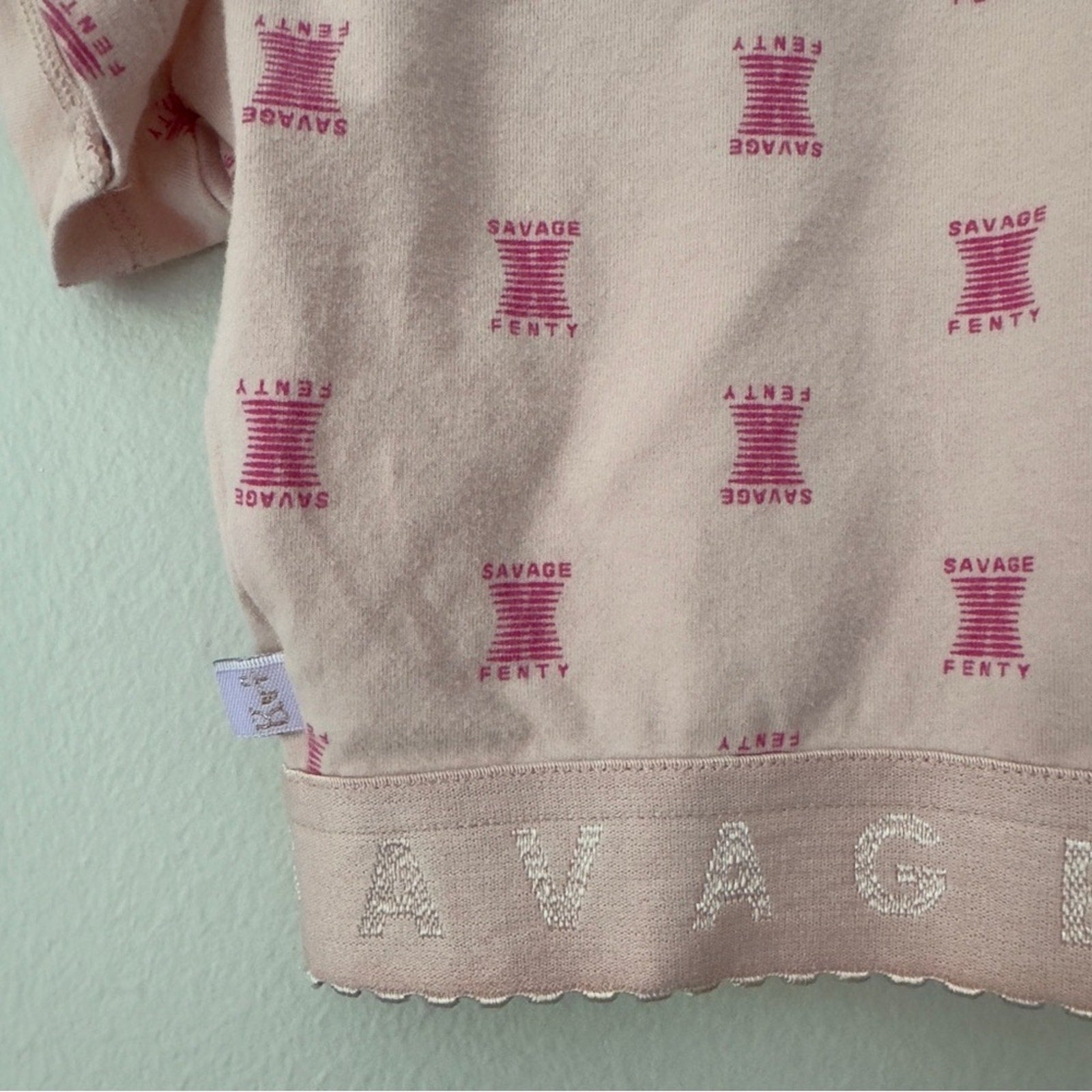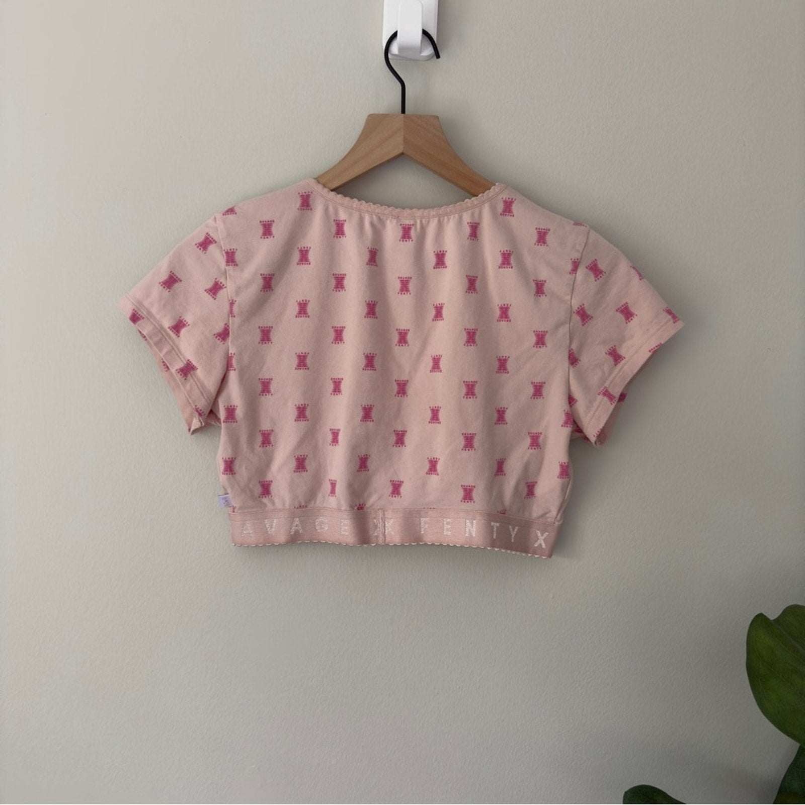 Savage X Fenty Cotton Jersey Crop Top Pink Ash X Link Print Short Sleeve Stretch