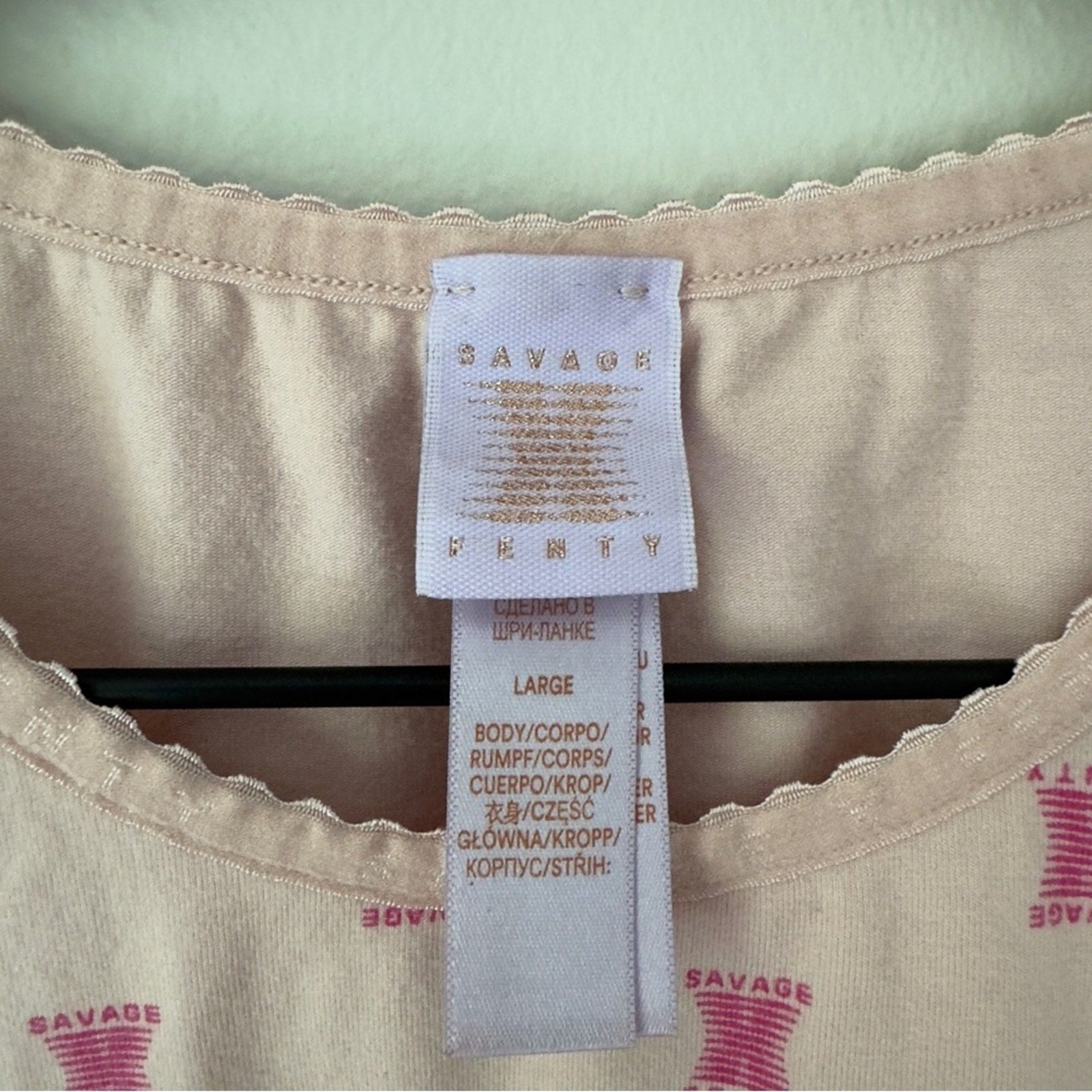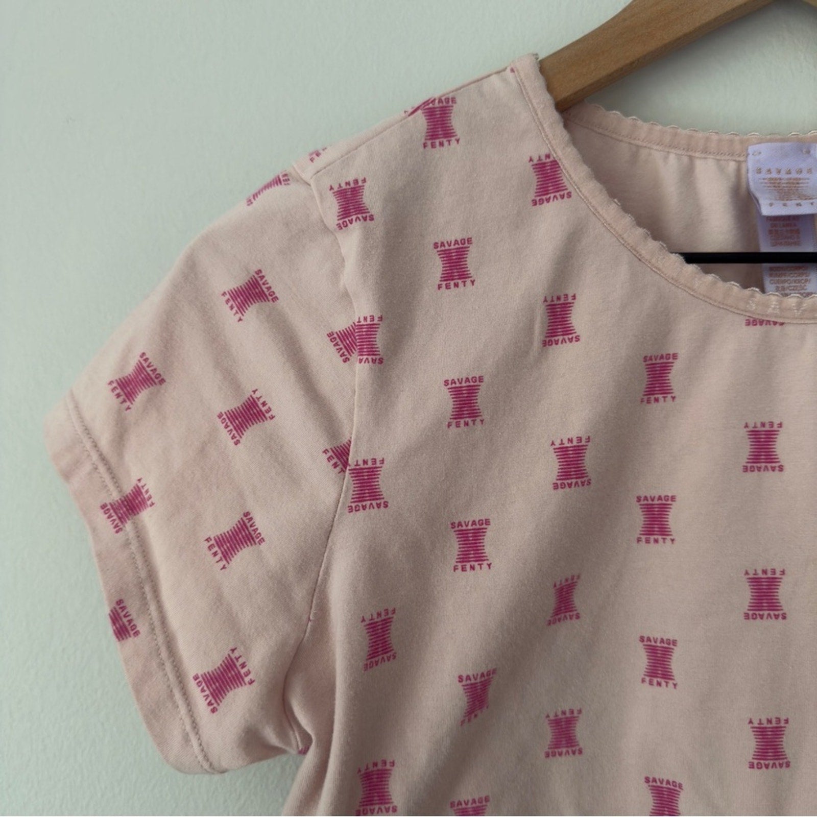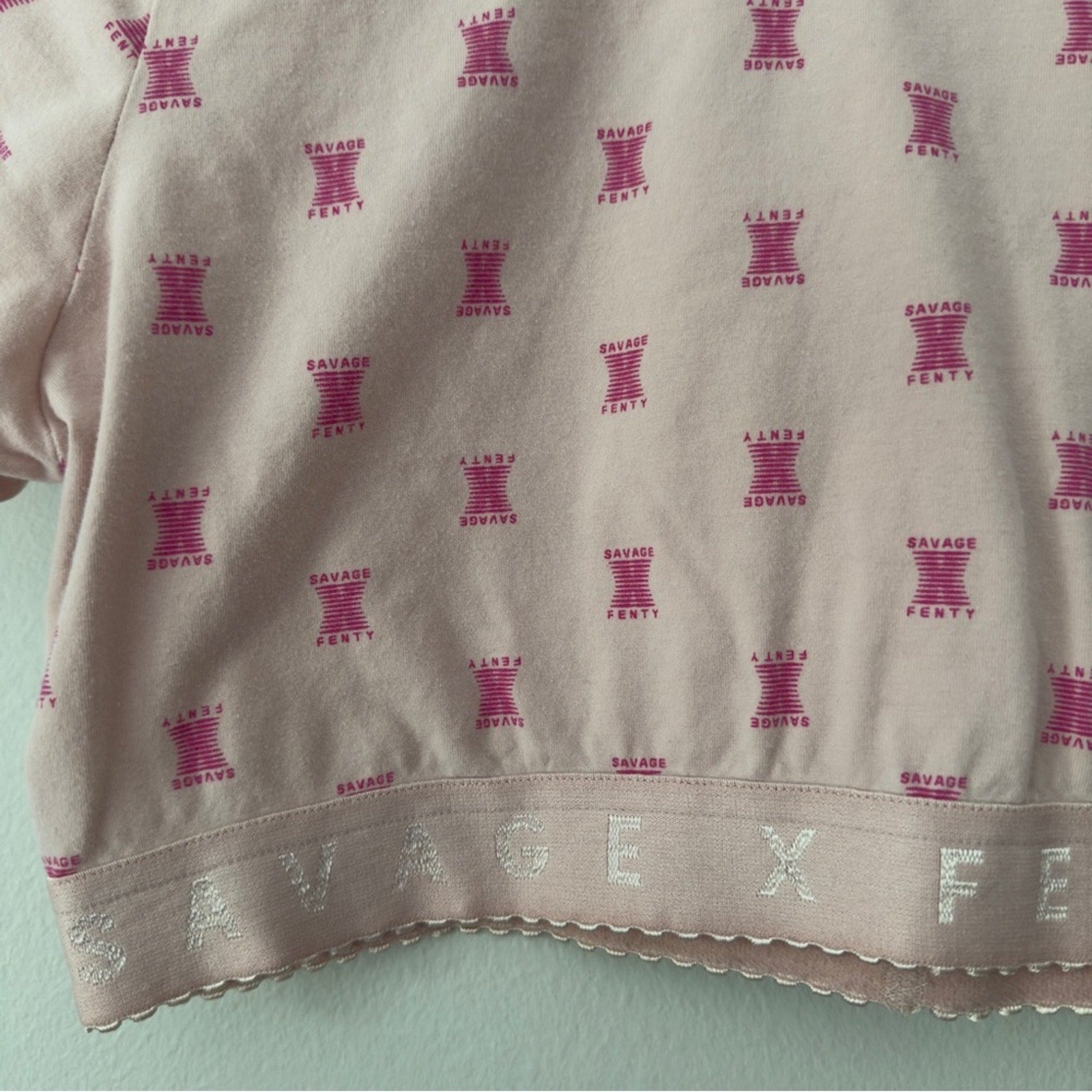 Savage X Fenty Cotton Jersey Crop Top Pink Ash X Link Print Short Sleeve Stretch