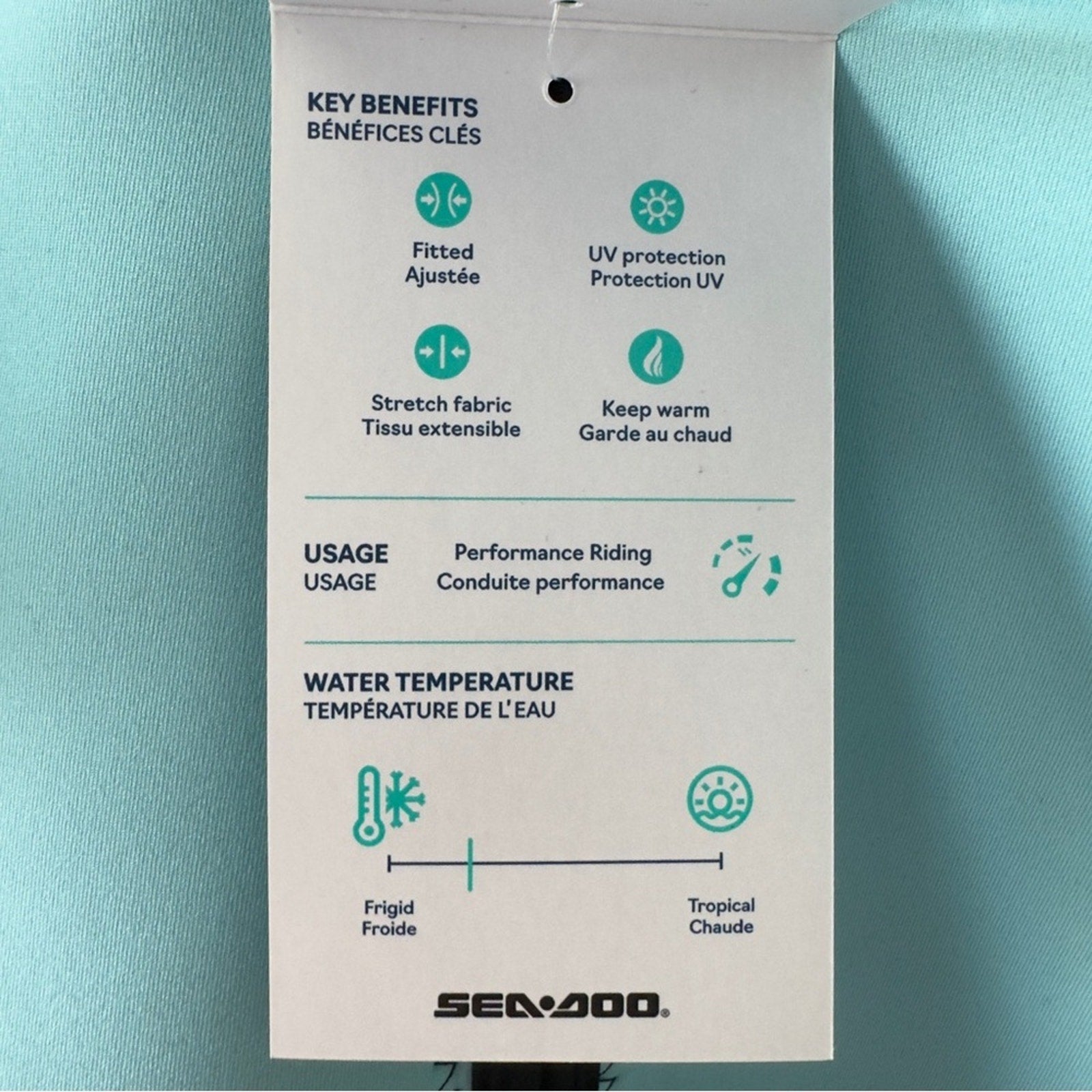 This Sea-Doo jacket combines functionality with style, featuring a high collar and a full front zipper for optimal comfort. The vibrant blue and purple color scheme ensures you stand out on the water, while the performance material offers excellent protection against the elements.