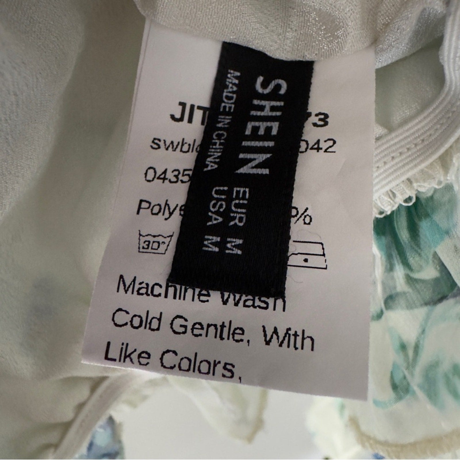 Shein Floral Off-Shoulder Ruffle Top Long Sleeve Cropped Crop Frilly Spring EUC