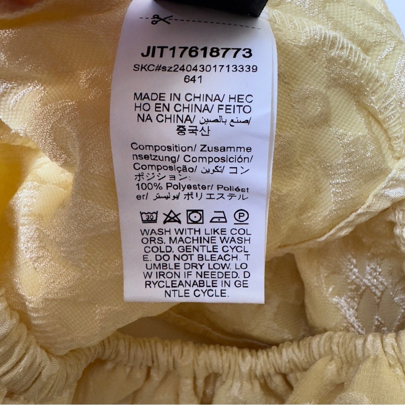 Shein Strapless Floral Jacquard Top Ruffle Peplum Tie Bow Back Butter Yellow EUC