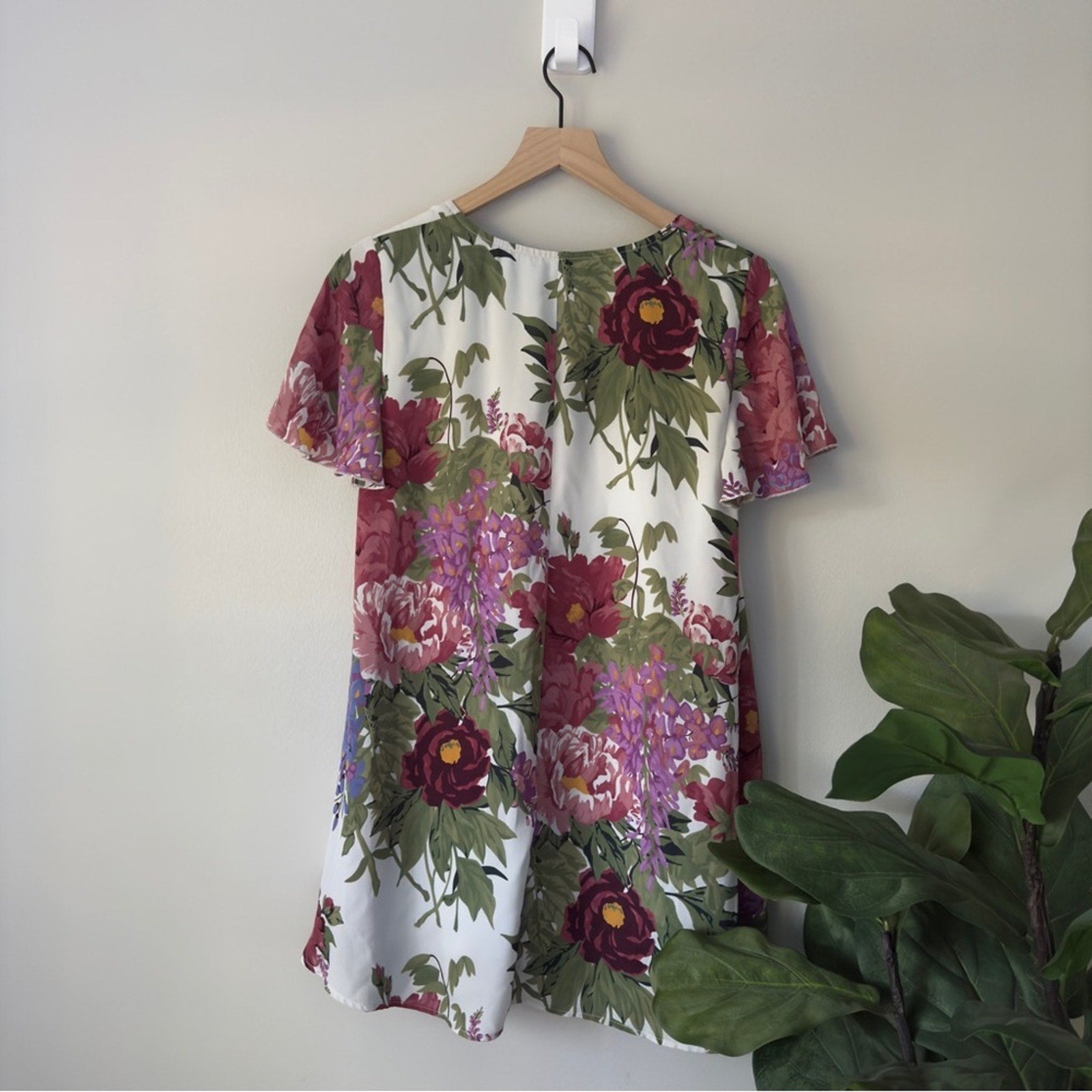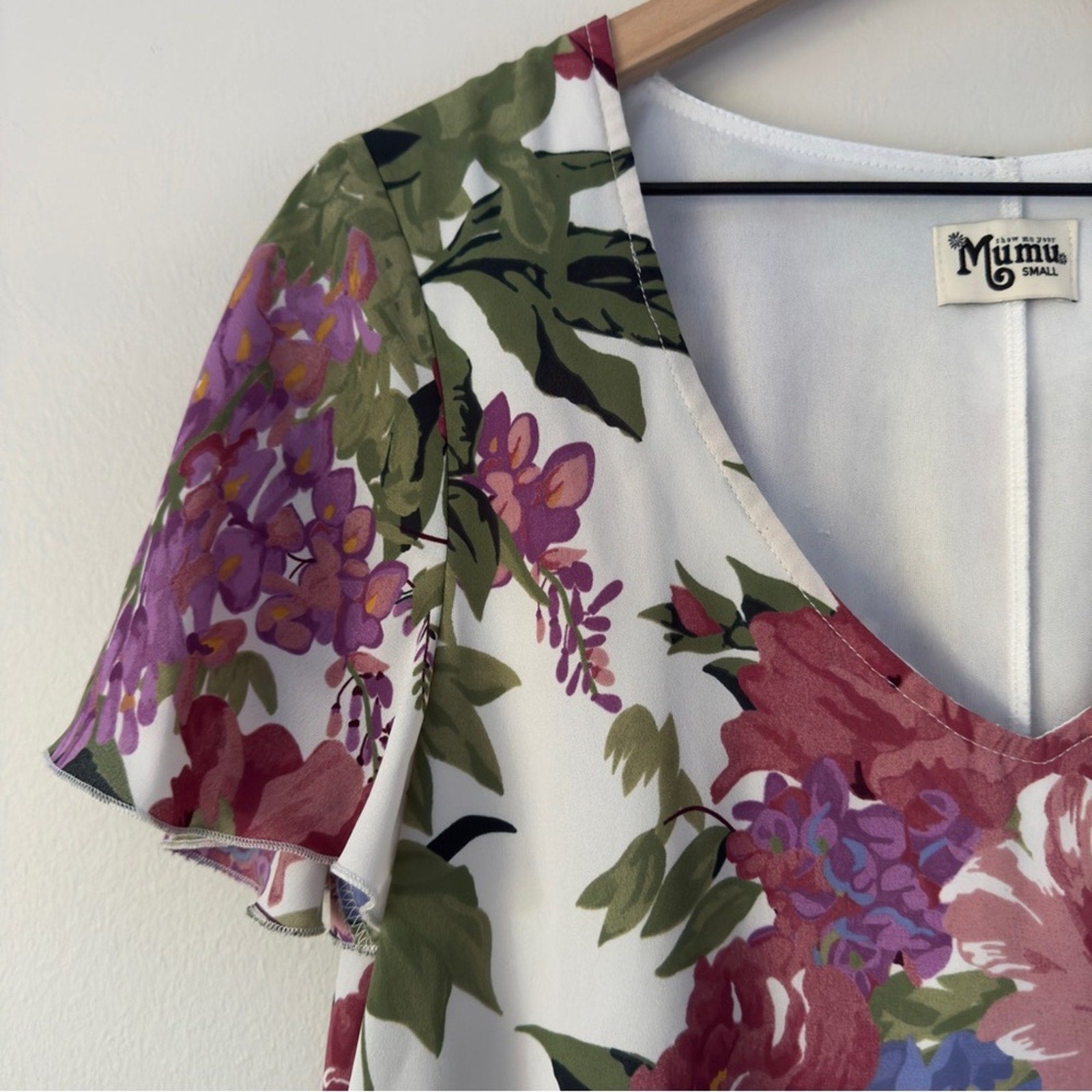 Show Me Your MuMu Floral Flutter Sleeve Mini Dress Scoop V-Neck Lined Flowy EUC