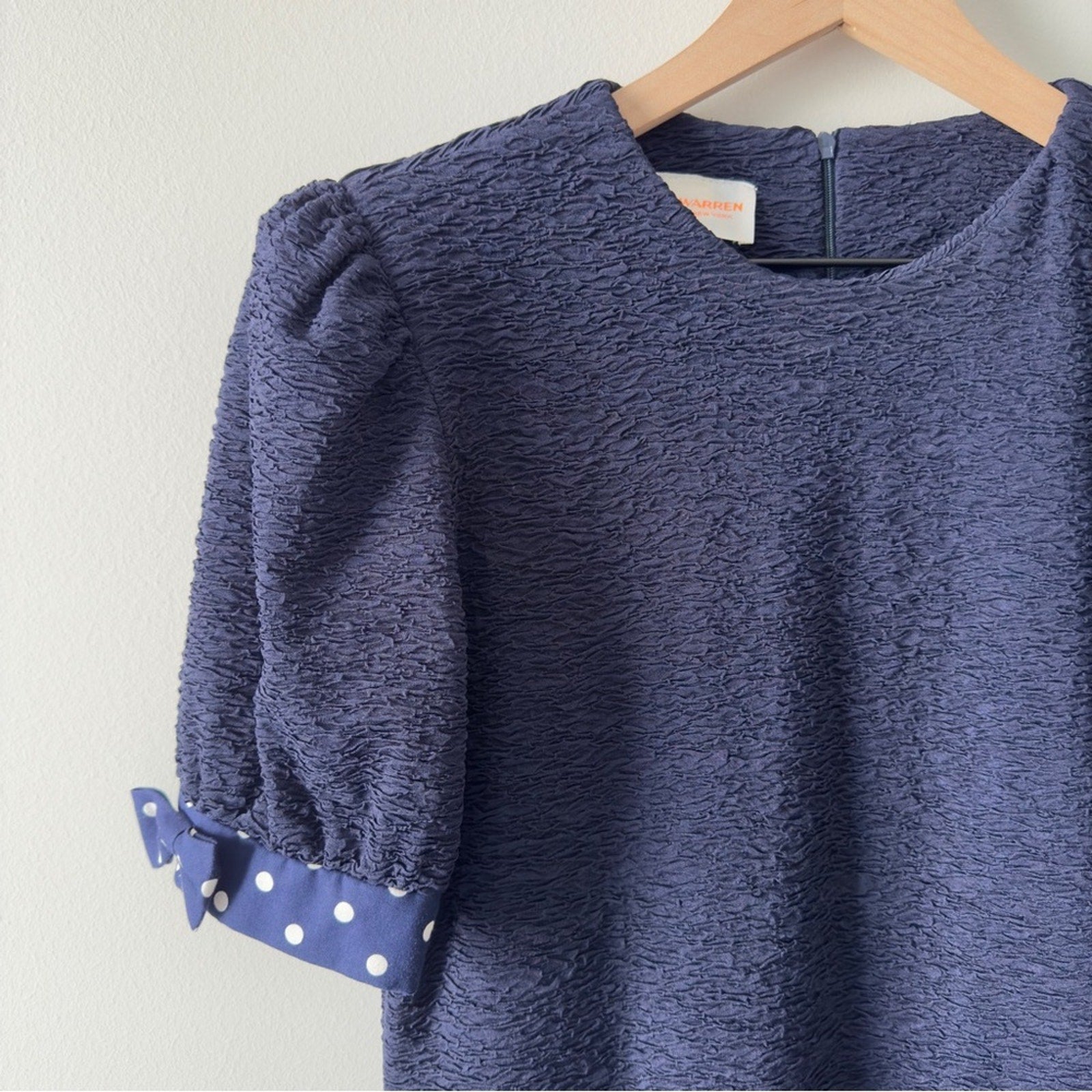Vintage 1980s David Warren Union Label Dress Drop Waist Polka Dot bow sleeve EUC