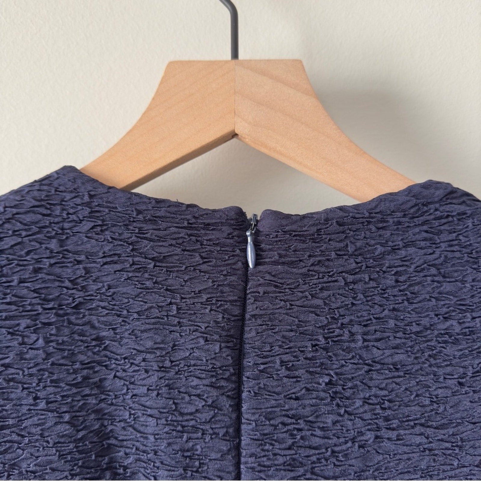 This charming blue dress features a fit and flare silhouette with a crew neck and puff short sleeves, perfect for casual or work settings. The design is simple yet elegant, offering a comfortable and stylish option for everyday wear.