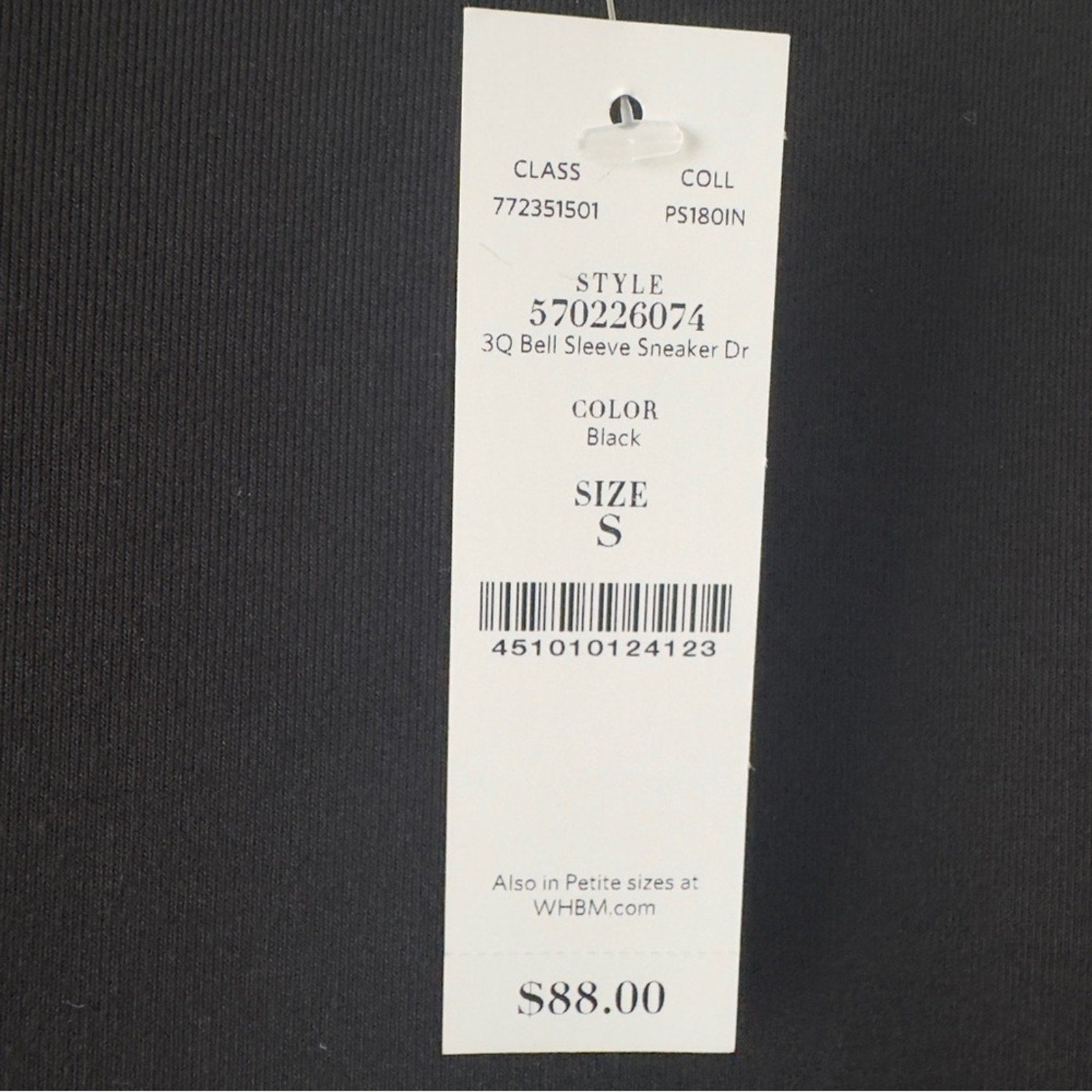 White House Black Market Bell Sleeve Sneaker Dress Classic Black Solid zip back
