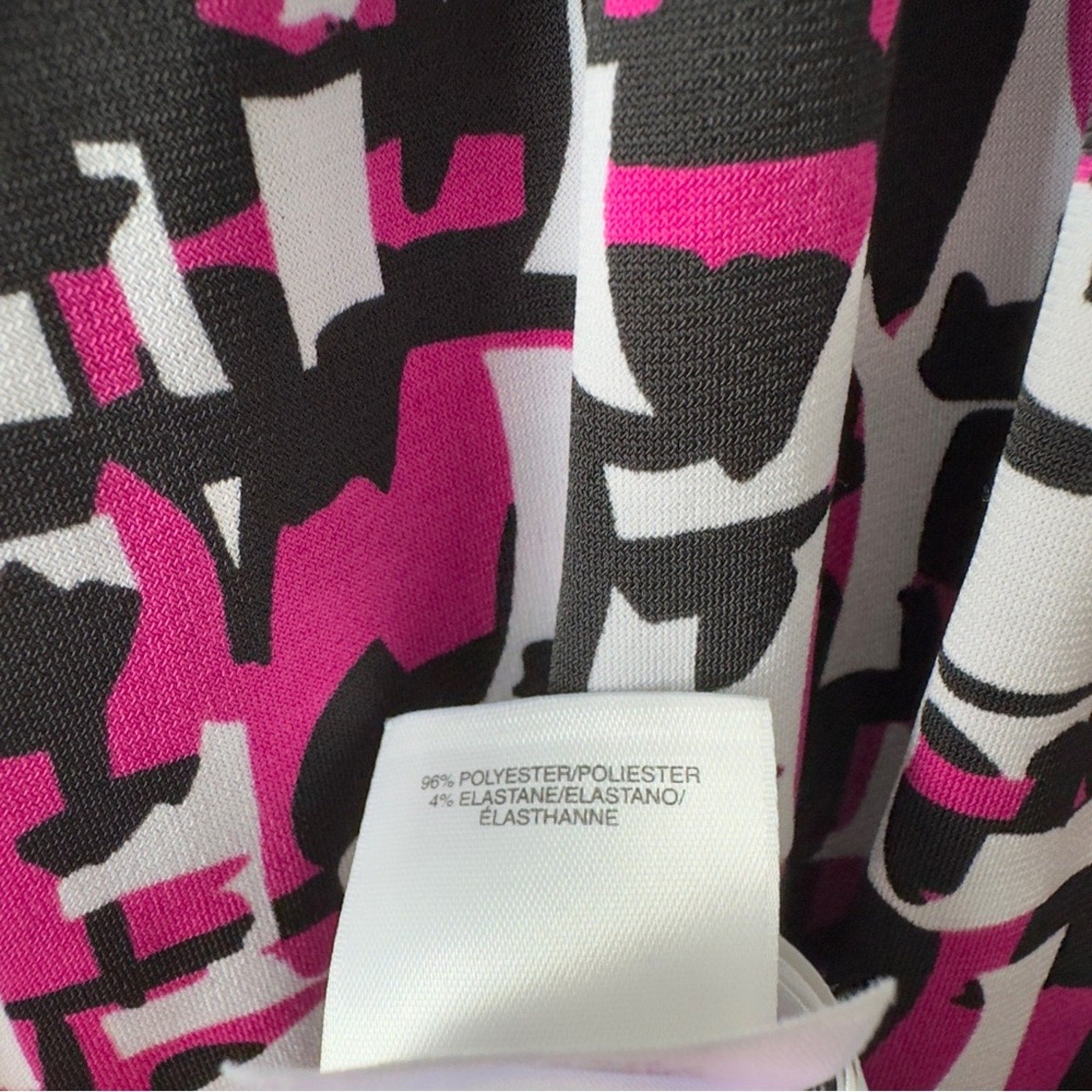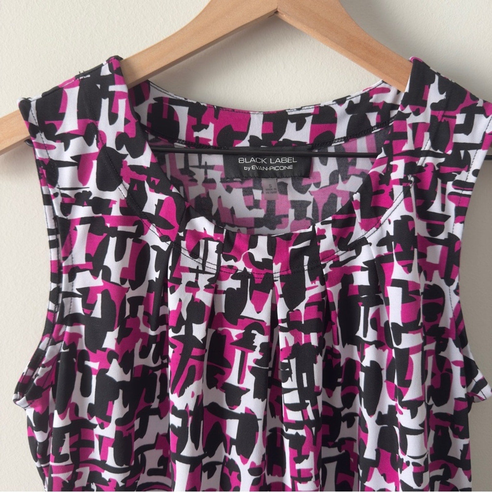 Y2K Evan Picone Black Label Pink White Geometric Blouse Tank Top Sleeveless EUC