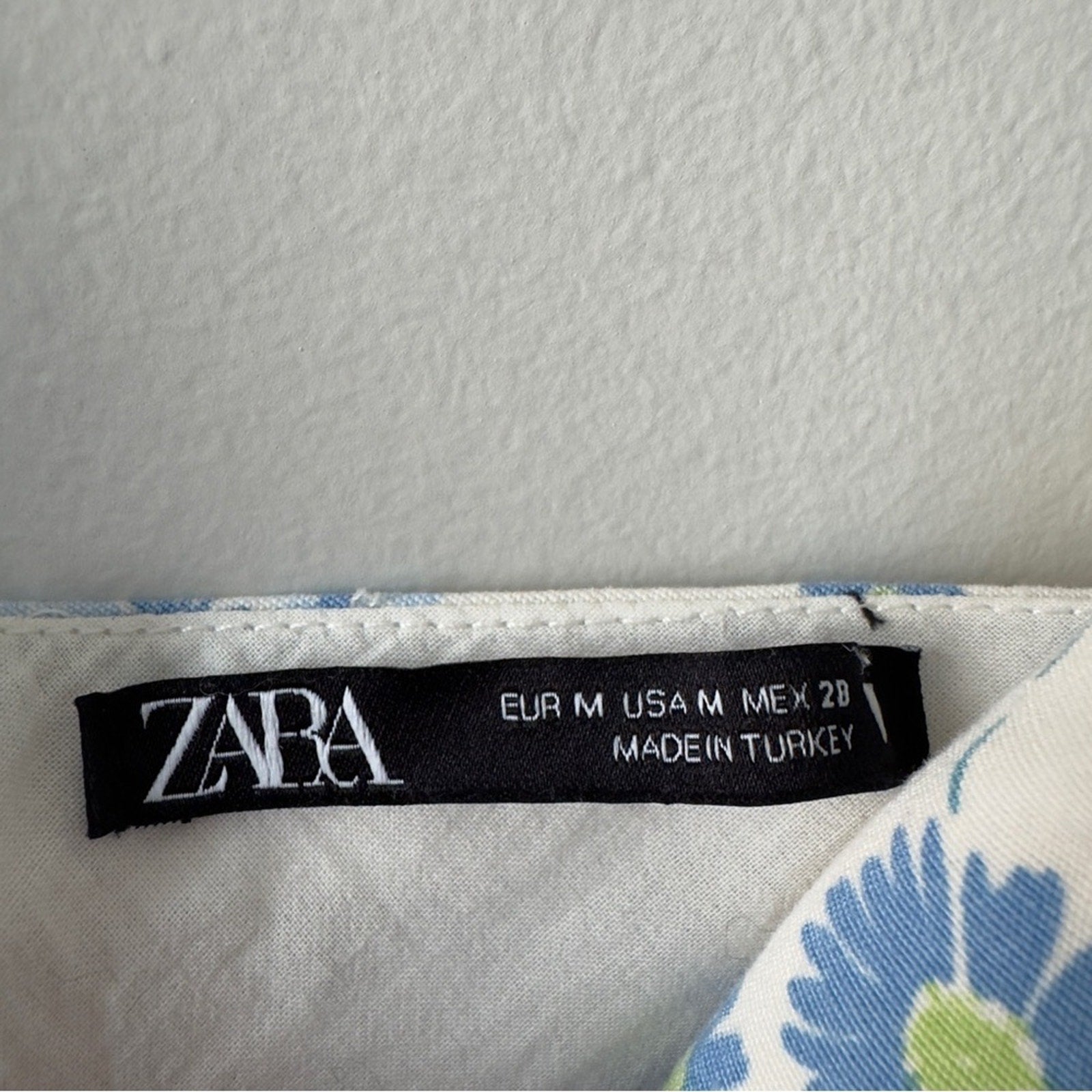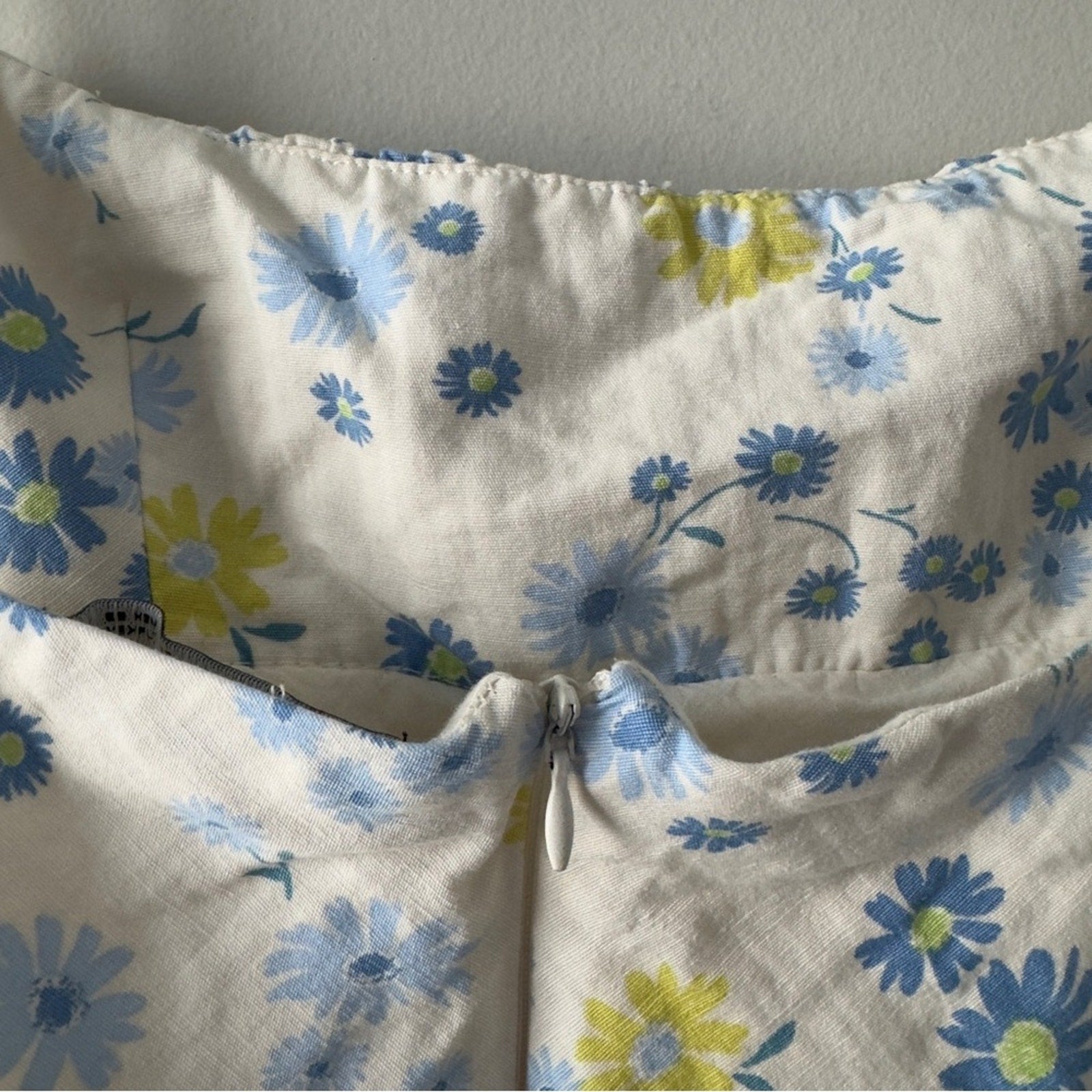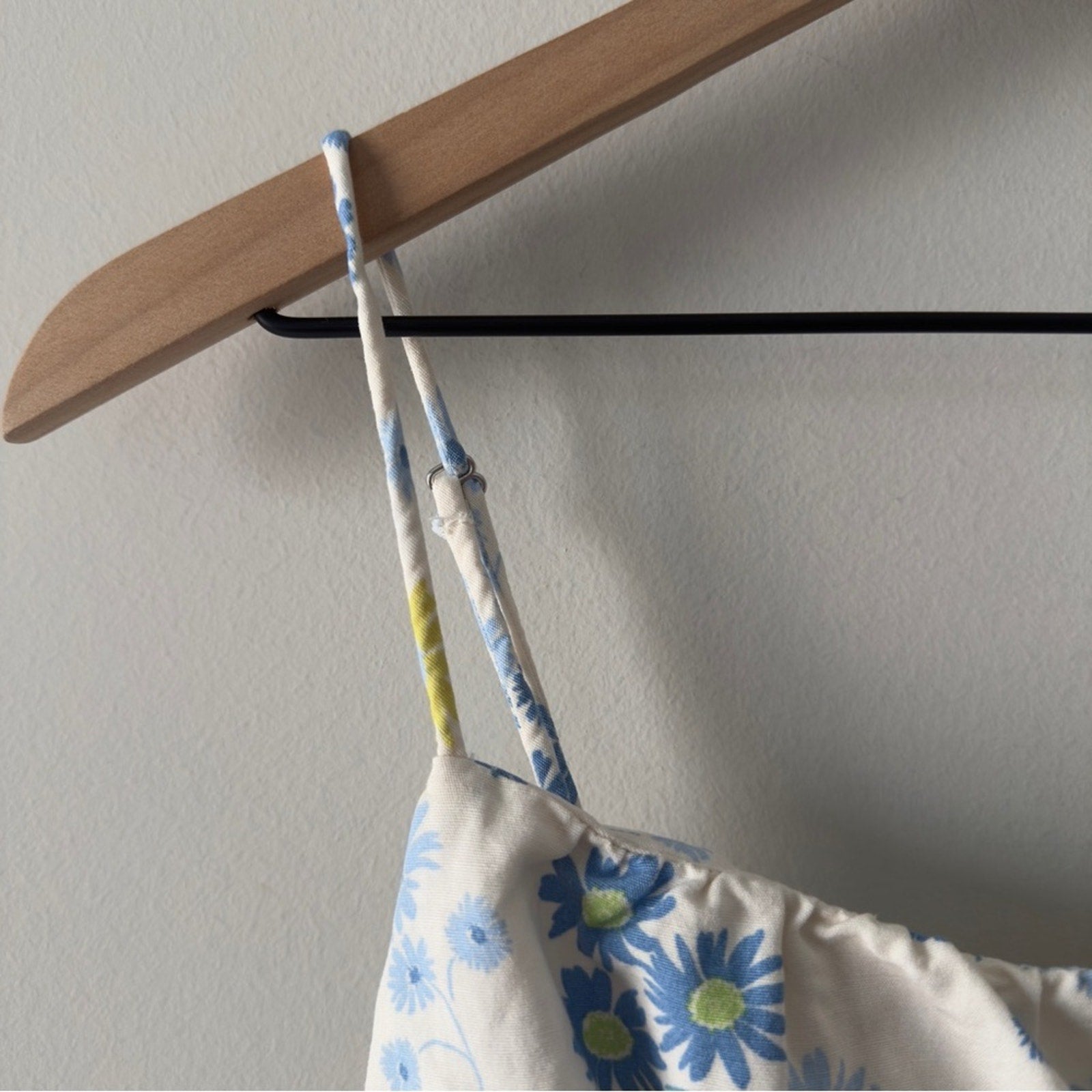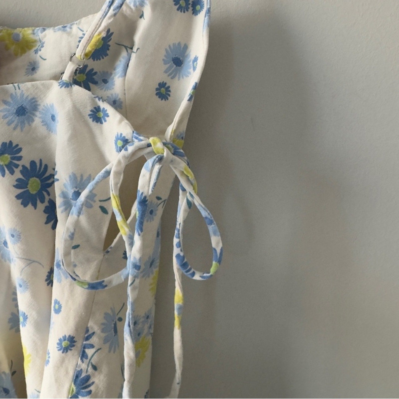 Zara Floral Mini Dress Yellow Blue white adjustable spaghetti straps tie sides M