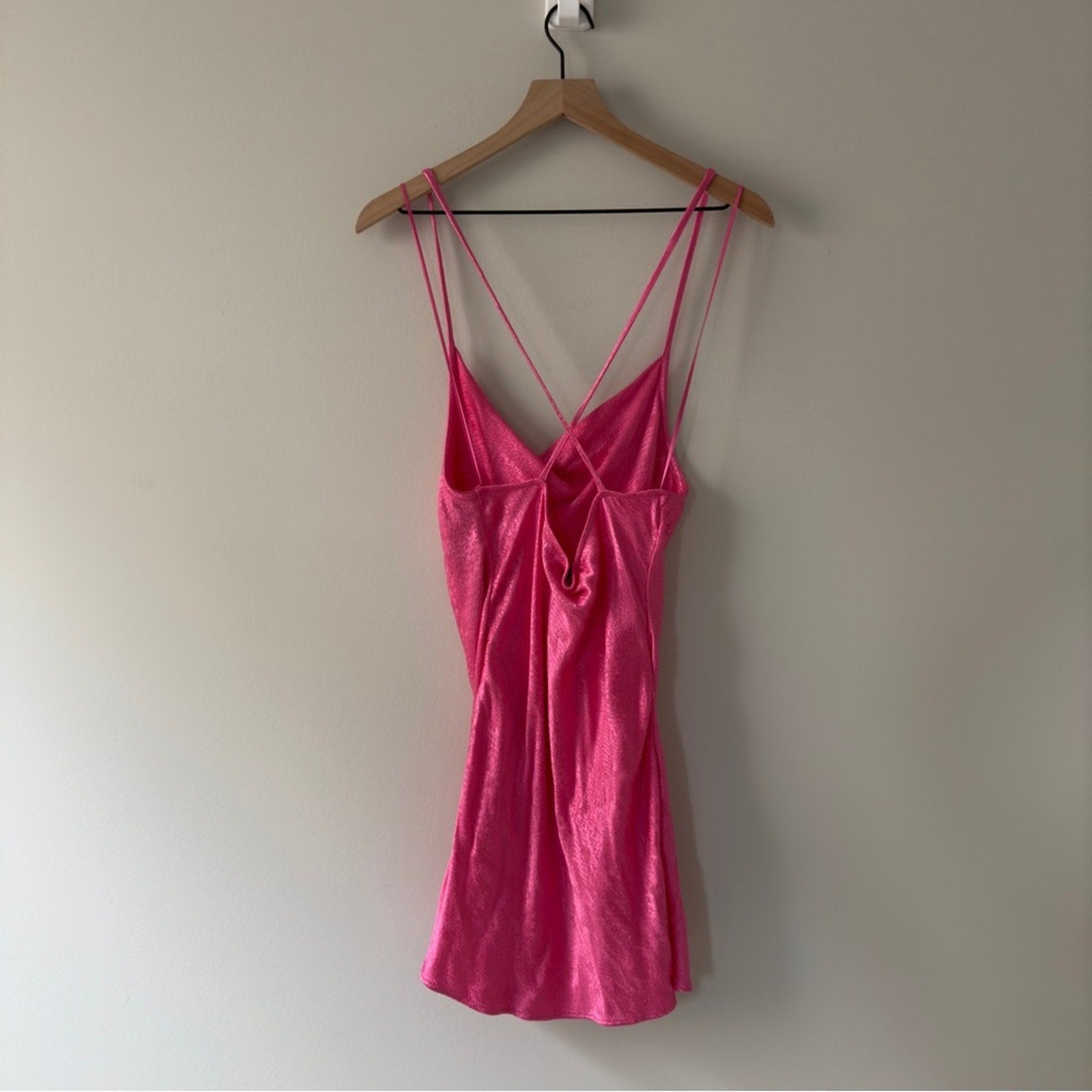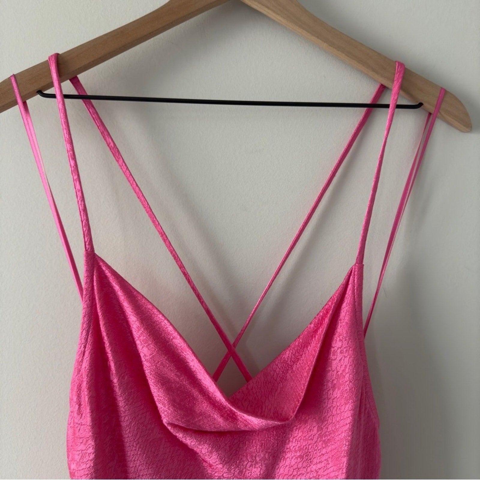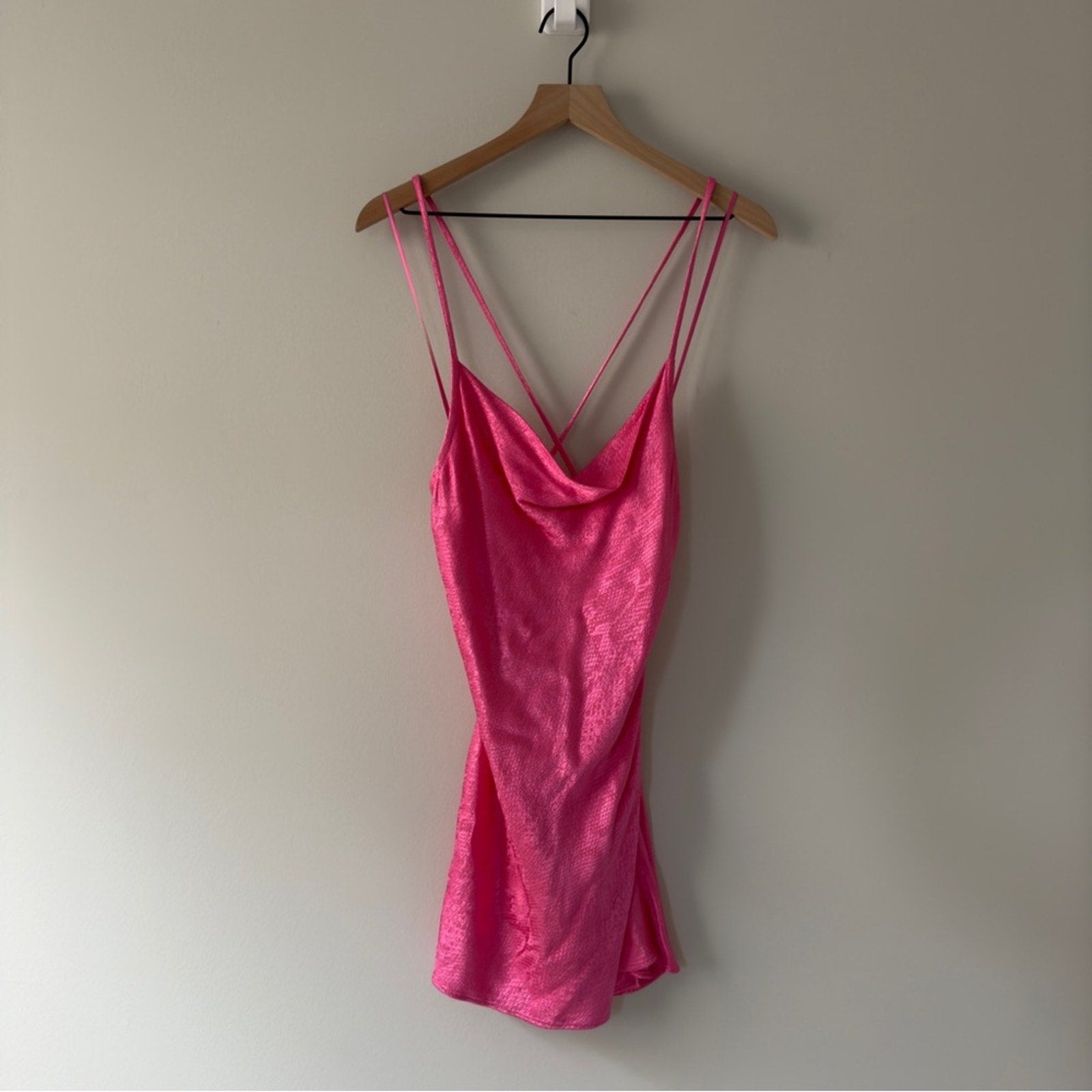 Zara snake print Satin hot Pink Slip Dress faux wrap spaghetti straps mini party